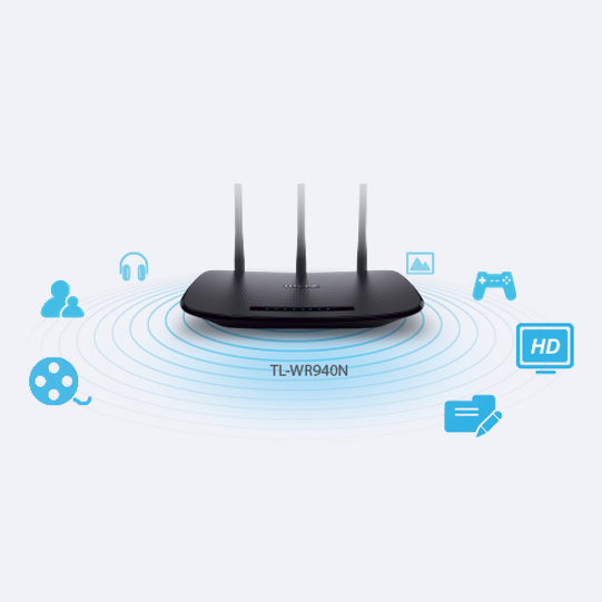 TL-WR940N est un équipement réseau combinant les modes filaire et sans fil, adapté aux besoins spécifiques des petites entreprises et des réseaux domestiques. Doté de la technologie Mimo, le TL-WR940N offre une performance sans fil avancée exceptionnelle. C'est un routeur idéal pour le streaming de vidéos au format HD, le Vo-IP et les jeux en ligne. Outre son aspect élancé et branché, son bouton WPS assure un chiffrement WPA2 pour protéger votre réseau contre les intrusions extérieures.