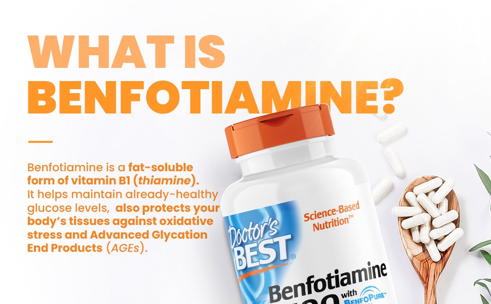 La benfotiamine augmente le taux sanguin de thiamine pyrophosphate (TPP), la coenzyme biologiquement active de la thiamine. La thiamine et son coenzyme, la TPP thiamine (vitamine B1) joue un rôle essentiel dans le métabolisme du glucose, par ses actions co-enzyme TPP (pyrophosphate de thiamine). Le TPP est formé par addition enzymatique de deux groupes phosphates donnés par l'ATP à la thiamine. Le TPP porte également le nom de thiamine diphosphate. Dans le cytoplasme de la cellule, le glucose, un sucre à 6 carbones, est métabolisé en acide pyruvique, qui est converti en acétyl-CoA, autrement connu sous le nom d'acétate actif. L'acétyle CoA pénètre dans la mitochondrie, où il sert de substrat de départ dans le cycle de l'acide citrique de Kreb. Le cycle de Krebs est la principale source d'énergie métabolique cellulaire. Le TPP, ainsi que d'autres coenzymes, est essentiel pour l'élimination du CO2 de l'acide pyruvique, qui est à son tour une étape clé dans la conversion de l'acide pyruvique en acétyl CoA. L'élimination du CO2 de l'acide pyruvique est appelée décarboxylation oxydative et pour cette raison, le TPP était à l'origine appelé cocarboxylase. Le TPP est donc vital pour l'approvisionnement énergétique de la cellule. Benfotiamine aide à maintenir les cellules saines en présence de glucose sanguin. Agissant comme une super-thiamine biochimique, il le fait par le biais de plusieurs mécanismes cellulaires différents, comme discuté ci-dessous. Benfotiamine et métabolisme du glucose benfotiamine normalise les processus cellulaires alimentés par les métabolites du glucose. Tant que le glucose reste à des niveaux normaux, l'excès de métabolites du glucose ne s'accumule pas dans la cellule. La majeure partie de l'apport de glucose de la cellule est convertie en acide pyruvique, qui sert de substrat pour la production d'acétyl CoA, le combustible primaire pour le cycle krebs. De la quantité totale d'énergie métabolique (sous forme d'ATP) libérée par les aliments, le cycle de Krebs génère environ 90 pour cent.