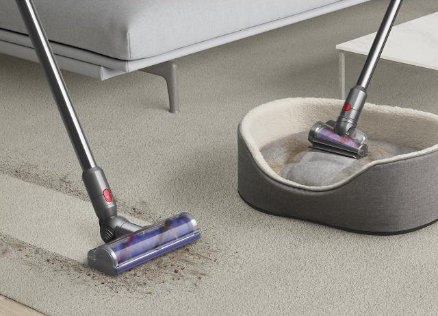 La tête de nettoyage Motorbar™ avec palettes d'épilation élimine automatiquement les poils enroulés de la barre de brosse. L'outil à vis à cheveux avec barre de brosse conique enlève les poils des lits d'animaux, des sièges d'auto et des escaliers.