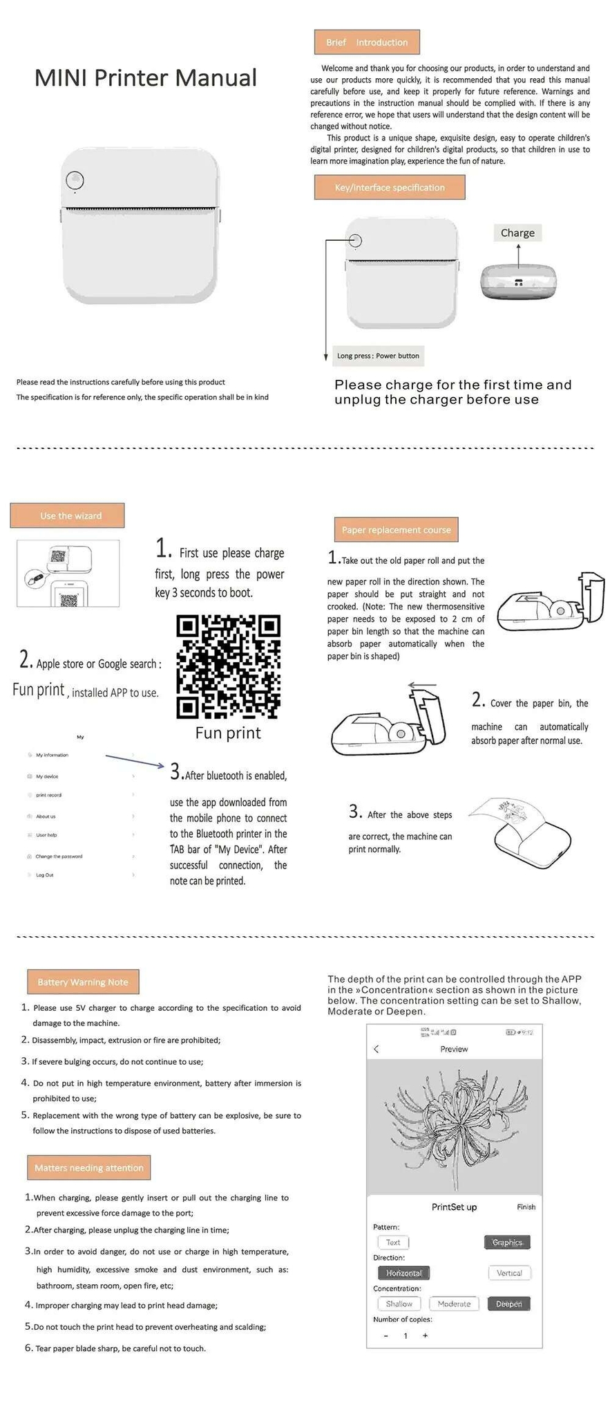 Batteries rechargeables intégrées de 800mAh, fonctionnant à faible bruit, l'imprimante thermique n'a pas besoin de cartouche d'encre lors de l'utilisation, faible coût de fonctionnement.