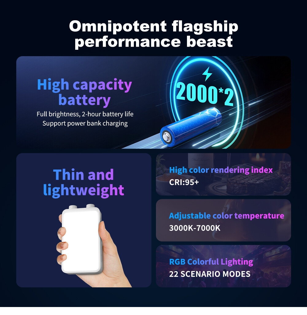 Améliorez vos prises de vue avec cette lampe LED vidéo RGB haute performance équipée de 136 perles lumineuses et d’une puissance de 40W. Compacte, portable et polyvalente, elle est conçue pour répondre aux besoins des photographes, vidéastes, vloggeurs et créateurs de contenu.