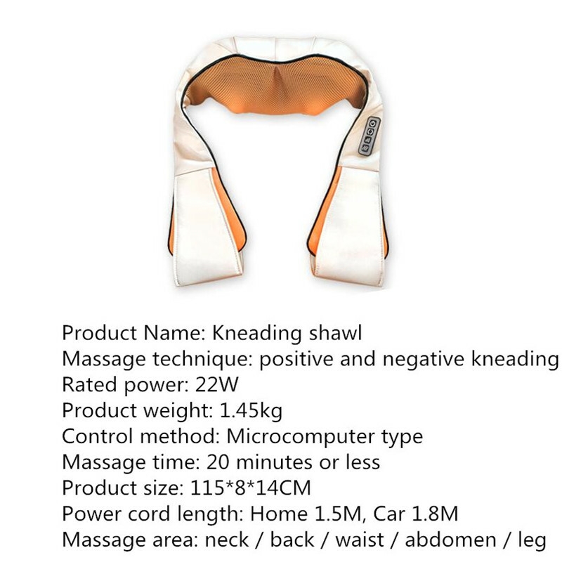 Massage par pétrissage professionnel : 8 nœuds de rotation bidirectionnels avec mode de thermothérapie en option et 3 intensités réglables, cet appareil personnalise la relaxation pour tout votre corps : cou, cervicales, épaules, dos, taille et jambes, et aide à soulager les douleurs musculaires. : Fournit un masseur d'épaule avec chaleur 3 niveaux de vitesse, de sorte que vous pouvez obtenir la bonne pression pour soulager les douleurs musculaires. Les longues sangles de poignée peuvent être utilisées pour ajuster la position et la force du massage. Avec les adaptateurs AC et DC dans l'emballage, vous pouvez obtenir un traitement de massage en profondeur après un travail chargé à la maison, ou après un long trajet en voiture, profitez d'un massage privé à tout moment et n'importe où.Sûr et facile à utiliser : le cou et les épaules masseur a des commandes intégrées pour une utilisation pratique. Une simple pression sur le bouton d'alimentation pour profiter d'un confort et d'une commodité réels. Dispositif de protection contre la surchauffe et fonction d'arrêt automatique de 15 minutes pour garantir la sécurité. Haute qualité : Offrez une meilleure expérience de massage. Tissu en maille 3D respirant de qualité supérieure et cuir PU durable, confortable et durable Inquiet de la santé cervicale pour toute votre famille, détendez-vous avec ce masseur shiatsu pendant 15 minutes chaque jour