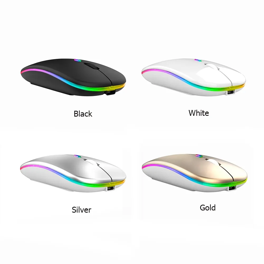 ماوس لاسلكي قابل لإعادة الشحن وصامت - نحيف للغاية، DPI قابل للتعديل، مريح ووضع مزدوج (بلوتوث + 2.4 جيجاهرتز)