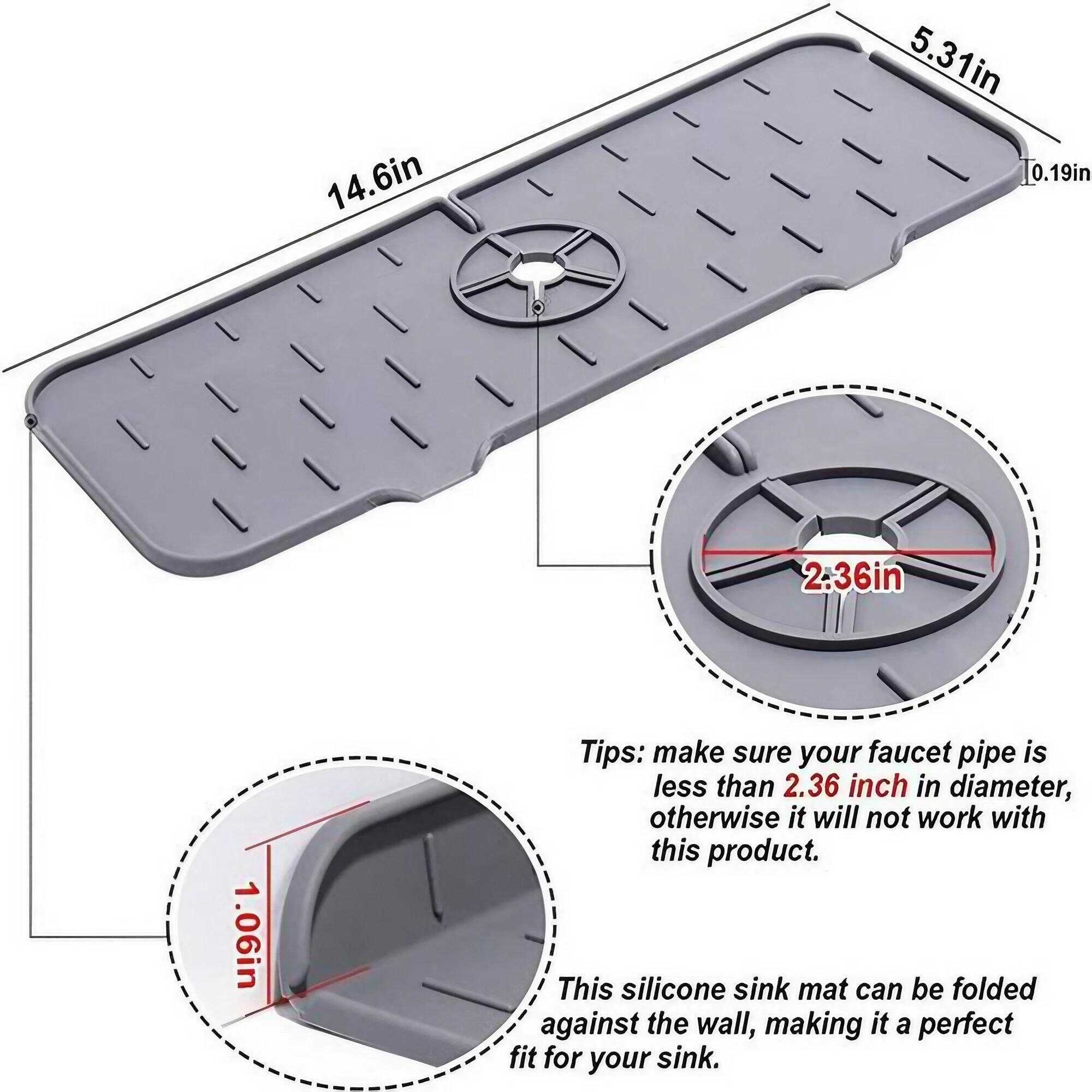 حصيرة سيليكون واحدة للحنفية، مضادة للانسكاب، وخالية من مادة BPA، لتجفيف الأطباق على أسطح المطبخ أو الحمام.