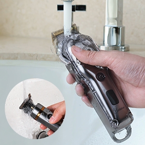 La tondeuse et tous ses accessoires sont entièrement lavables, il suffit donc de les rincer sous le robinet pour un nettoyage facile.