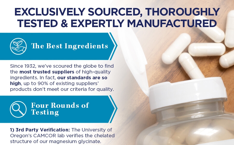 Restez calme avec le glycinate : également connu sous le nom de bisglycinate de magnésium, notre magnésium chélaté peut aider à favoriser une relaxation saine, l'humeur et la réponse de l'esprit et du corps au stress occasionnel.Mega Mineral : Nos capsules de glycinate de magnésium sont également formulées pour aider à soutenir la santé des os et la fonction musculaire et enzymatique saine.