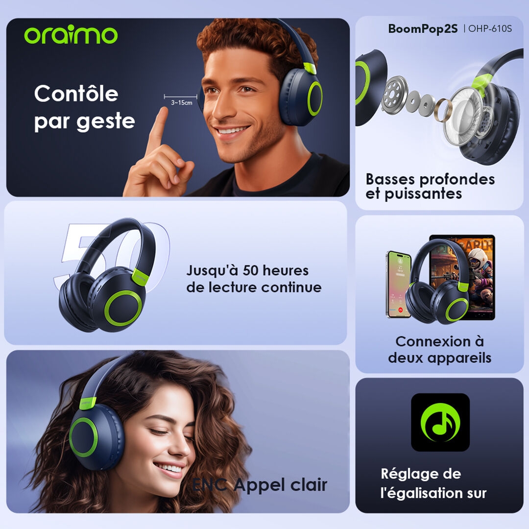 *Le contrôle par geste peut être désactivé sur l'application oraimo Sound.