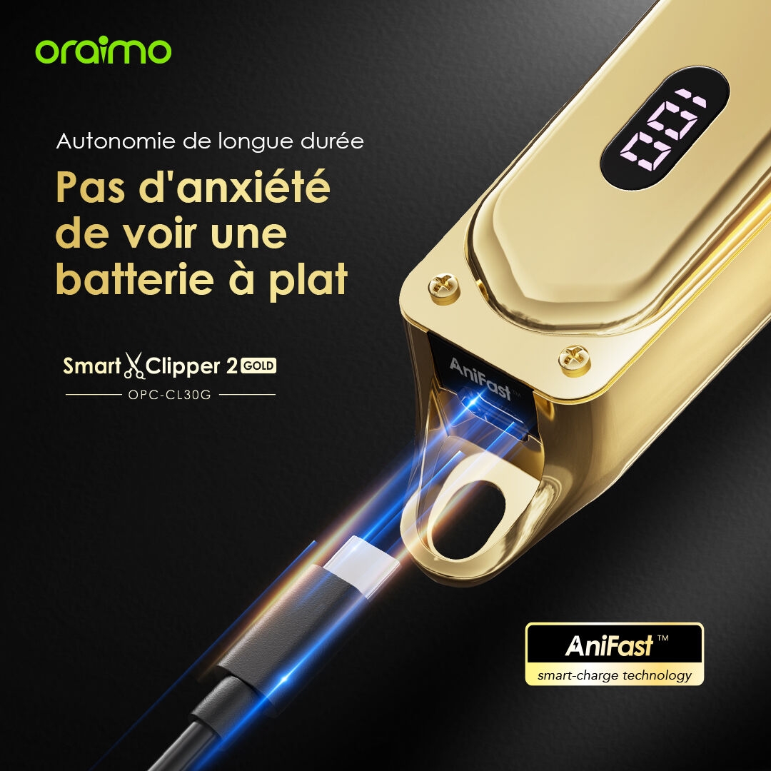 oraimo SmartClipper 2 Gold est livré avec un indicateur LED pour indiquer la puissance/charge. Vous pouvez connaître le niveau de la batterie en un coup d'œil.