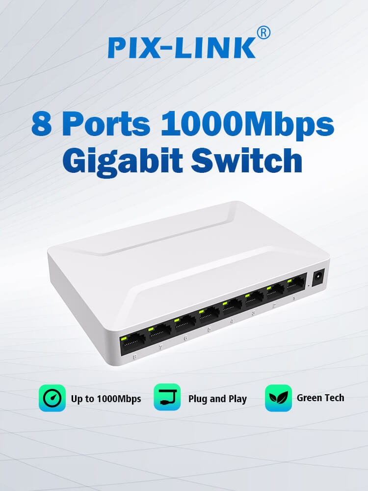 Le Pix-Link Switch Gigabit 8 ports est un commutateur réseau non manageable, idéal pour les entreprises, les boutiques, ou les réseaux domestiques ayant besoin de plus de connexions filaires à haute vitesse. Grâce à ses 8 ports Ethernet RJ45 à débit Gigabit (10/100/1000 Mbps), il assure une transmission de données rapide, stable et sans interruption, parfaite pour les transferts lourds, la vidéo HD, les jeux en ligne ou les systèmes de vidéosurveillance.