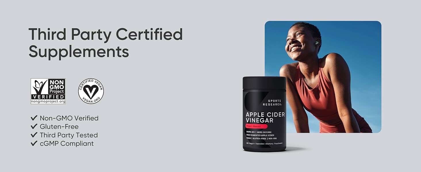 Une capsule de vinaigre de cidre de pomme Sports Research® par jour est le moyen le plus simple d'obtenir tous les avantages du vinaigre de cidre de pomme sans son goût aigre. Dérivé de cidre de pomme fermenté, ce mélange synergique certifié végétalien de vinaigre de cidre de pomme et de poivre de Cayenne a été formulé pour favoriser le nettoyage alimentaire, la digestion et la santé intestinale sans aucun additif inutile.*
