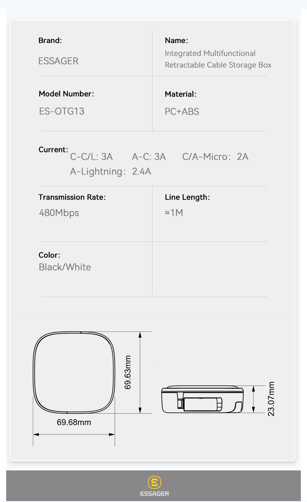 • Charge rapide USB-C :Profitez d'une charge rapide avec ce câble USB-C vers Type-C de ESSAGER. Idéal pour les téléphones Xiaomi Little Fast Charging Data Travel Multi Functional Cord avec porte-boîte de rangement.
