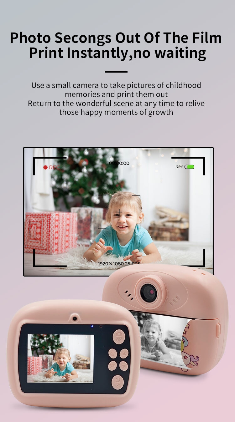 Avec seulement 100 mm, cette mini caméra à impression thermique est parfaite pour les mains des enfants, ce qui leur permet de capturer facilement des moments en déplacement.