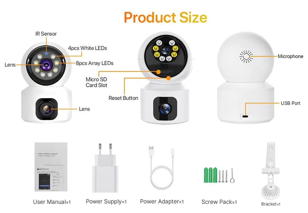 ✔ Vidéo haute résolution 8 MP, pixels Ultra HD (double objectif, chaque objectif 4 MP)