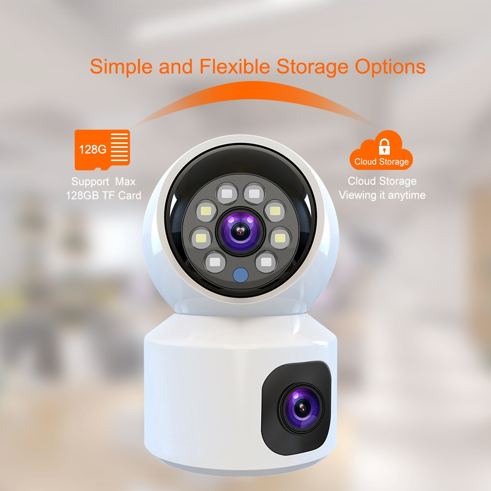 ✔ Prise en charge de 2 modes d'enregistrement : stockage cloud (payant) / carte micro SD (capacité maximale : 128 Go)