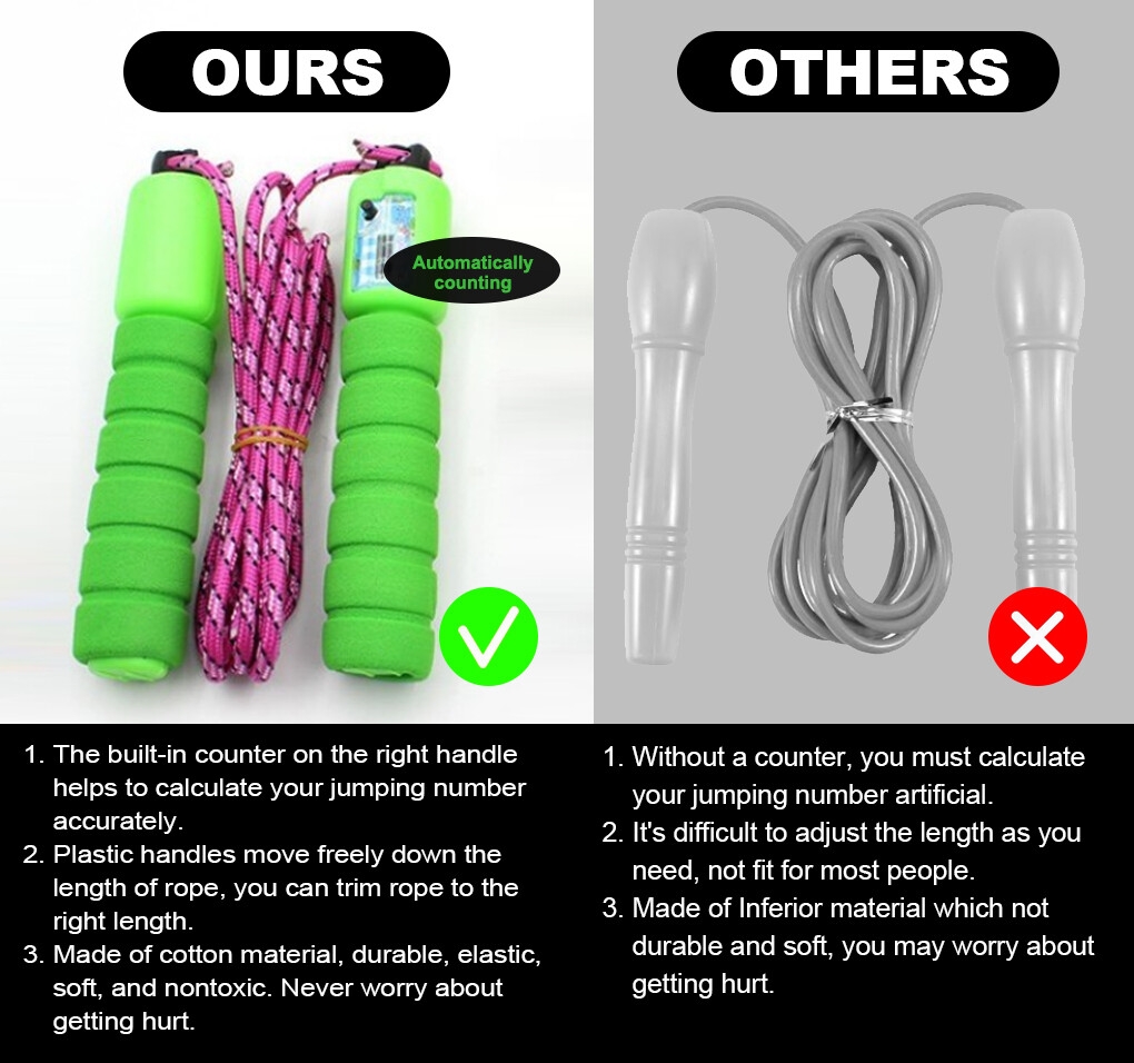 Optimisez vos séances d'entraînement avec cette corde à sauter équipée d'un compteur intégré ! Avec une longueur de 2.4m, elle est idéale pour tous les niveaux, que ce soit pour les enfants, les débutants ou les amateurs de fitness. Les poignées ergonomiques en mousse garantissent un confort optimal et une prise en main antidérapante, même pendant les exercices intenses. Un accessoire parfait pour brûler des calories, améliorer l'endurance et renforcer le cardio.