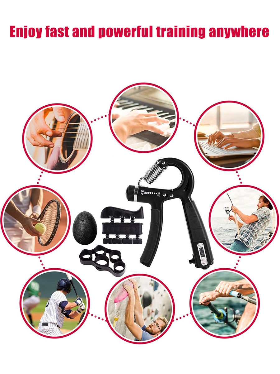 PACK DE 5】 Améliorez votre force de préhension avec cet ensemble d'entraînement de 5 pièces.Vous obtenez une pince à main, une balle de puissance de résistance, un anneau de renforcement des mains, un appareil d'exercice pour les mains et les doigts et une bande de résistance à l'étirement des doigts.