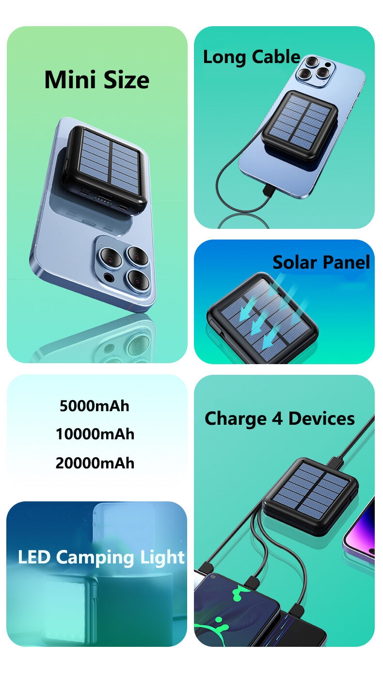 Restez toujours chargé, où que vous soyez, avec cette batterie externe solaire de 20000mAh. Grâce à sa grande capacité, elle recharge rapidement votre smartphone, tablette ou autres appareils plusieurs fois. Son panneau solaire intégré permet une recharge d’appoint en extérieur, idéale pour le camping, les voyages et les situations d’urgence.