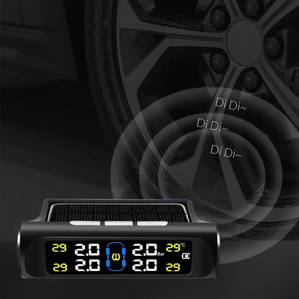 Système de surveillance d'alarme de pression des pneus de voiture TPMS à énergie solaire Systèmes d'alarme de sécurité automatique Avertissement de température de pression des pneus