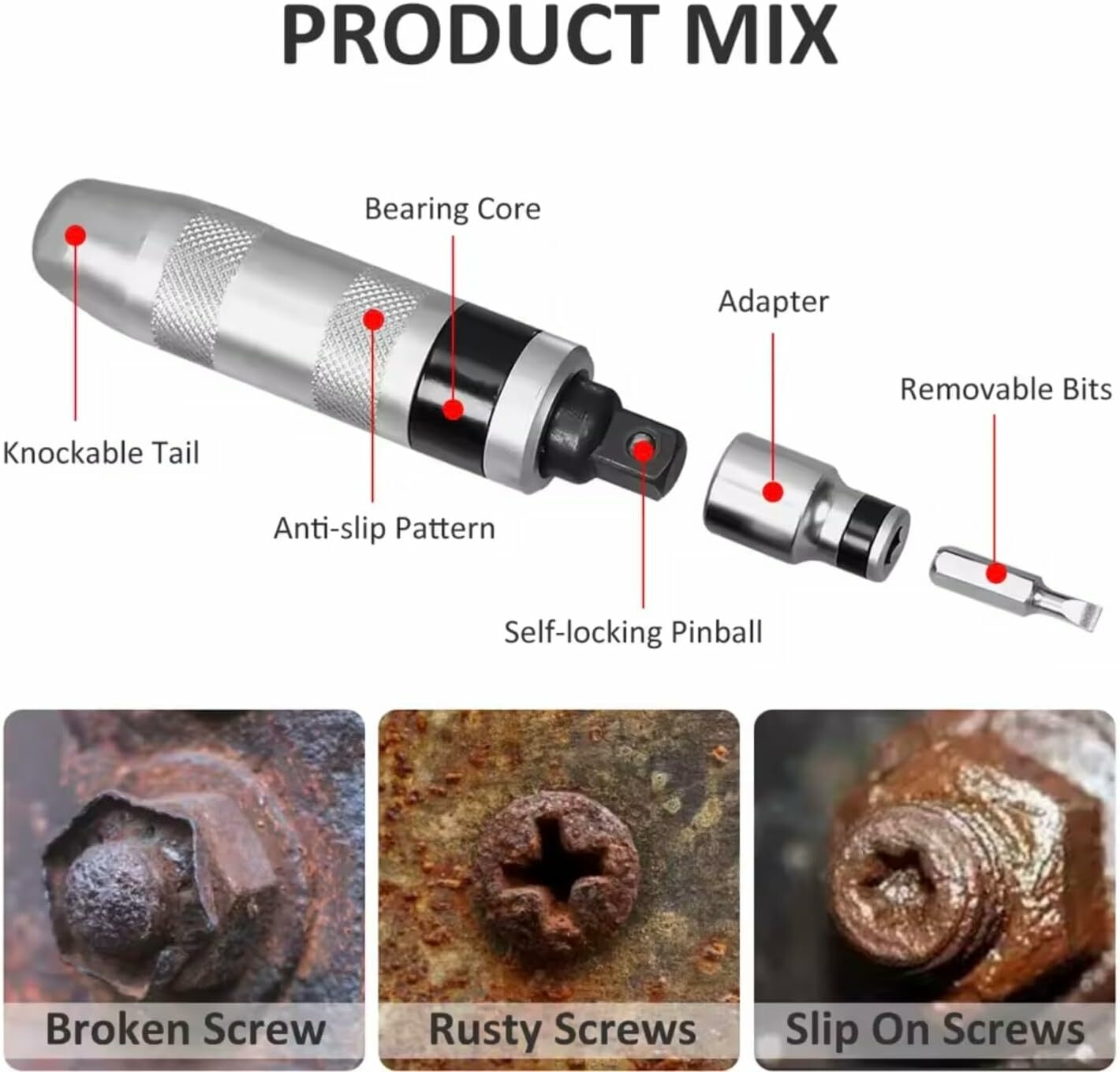 Ce tournevis à choc professionnel est l’outil indispensable pour débloquer facilement les vis rouillées, grippées ou abîmées. Son système à impact transforme la force d’un coup en un mouvement rotatif puissant, garantissant un dévissage rapide et efficace. Livré avec un coffret solide et des embouts interchangeables pour s’adapter à toutes vos réparations.