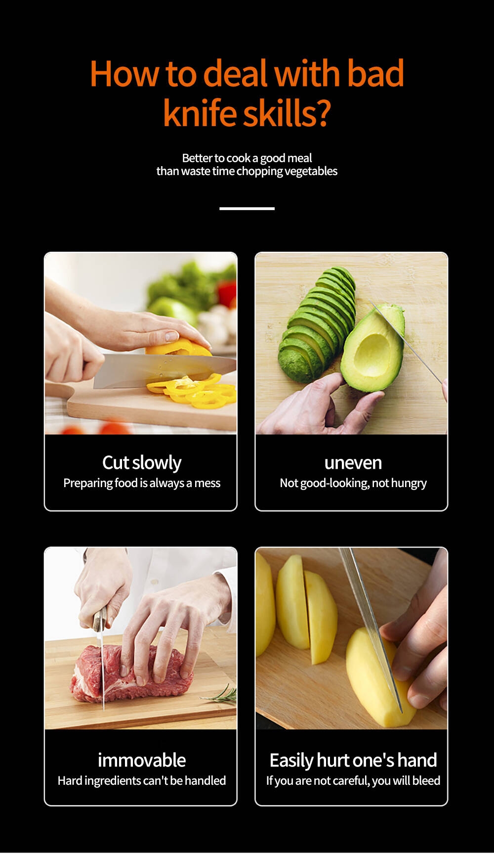 3. Gagnez du temps et de l'argent : grâce à ce kit de découpe pour la cuisine, vous pouvez économiser 70 % de temps, dire adieu aux yeux larmoyants lorsque vous coupez des oignons ; et préparer vos aliments avec plus d'élégance.