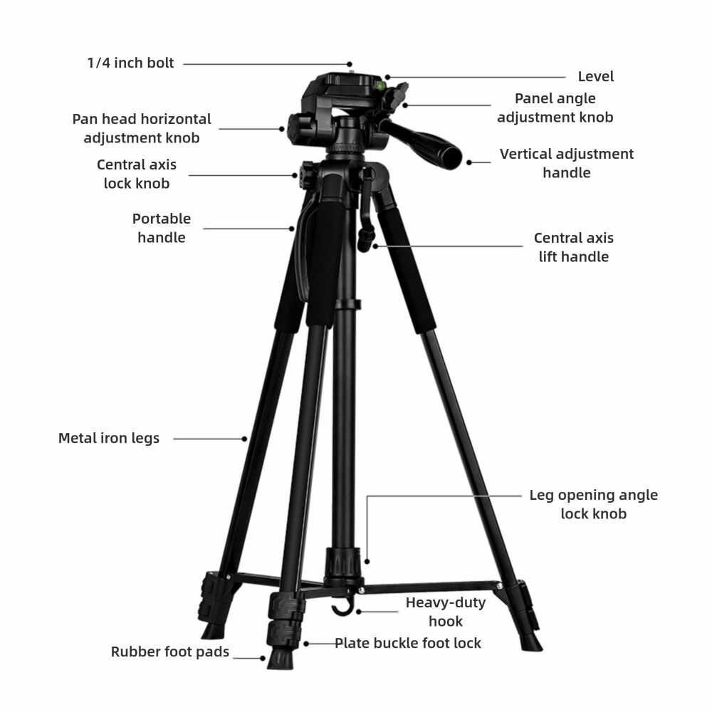 3.**Construction en alliage durable** : Fabriqué à partir d'un alliage robuste, ce trépied est conçu pour résister à une utilisation régulière tout en restant léger et portable pour un transport facile.