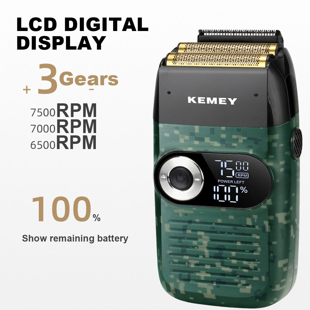 Découvrez notre rasoir électrique polyvalent doté d'un écran LED qui affiche visuellement la vitesse et la puissance restante. Vous pouvez ajuster la vitesse de rasage en fonction de l'épaisseur et de la longueur de vos cheveux ou de votre barbe. L'affichage vous rappelle quand il est temps de recharger, avec un voyant rouge qui s'allume pendant la charge. Ce rasoir puissant permet une utilisation sans fil, offrant des vitesses de rasage réglables entre 65 tr/min, 70 tr/min et 75 tr/min. Une charge complète en seulement deux heures permet une utilisation continue de 120 minutes. Le rasoir peut également être utilisé pendant la charge grâce à un câble USB, compatible avec divers adaptateurs comme ceux des téléphones ou des chargeurs portables.