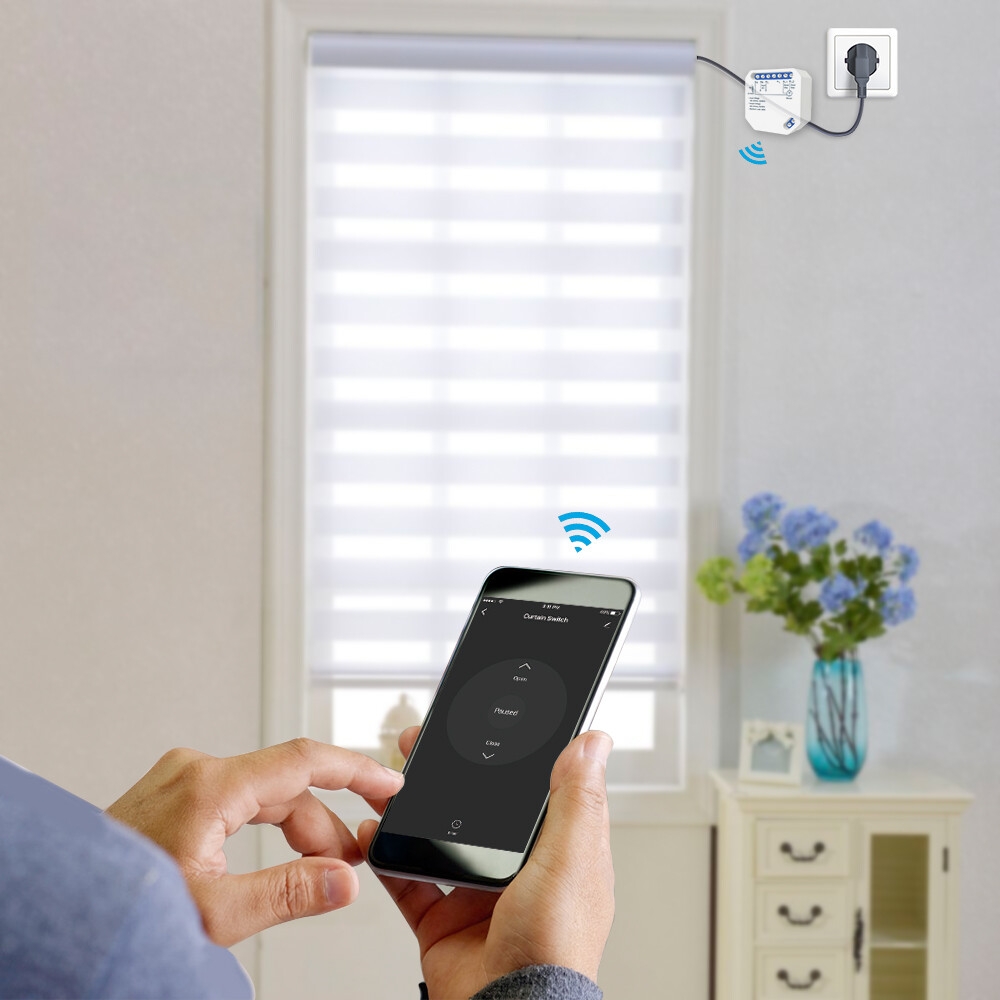 Programmez le module d'interrupteur sur l'application 'smart life/Tuya', puis votre rideau, votre store, votre volet roulant peuvent être télécommandés par téléphone et vous pouvez définir un calendrier, comme ouvert à 10 heures du matin, fermer à 19h00, alors votre store de rideau peut s'ouvrir ou se fermer automatiquement lorsque le temps est écoulé.
