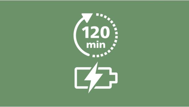 Performances optimales pendant 4 semaines avec une seule charge*Notre batterie au lithium durable offre jusqu'à 120 minutes d'autonomie, avec une option de charge rapide de 5 minutes**, pour une utilisation continue et puissante. |