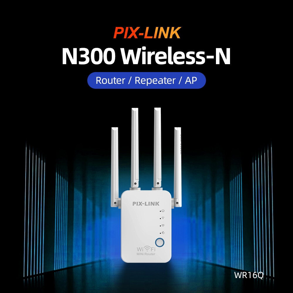 Le PIX-LINK WR16Q est un répéteur WiFi 300 Mbps conçu pour étendre la couverture de votre réseau sans fil, éliminer les zones mortes et offrir une connexion Internet plus stable dans toute la maison ou le bureau.